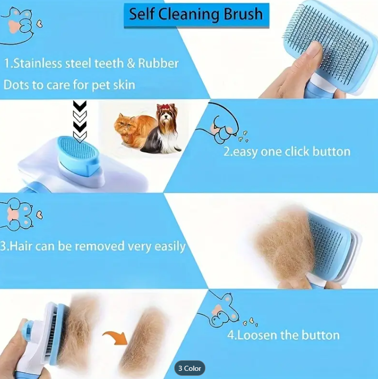 Massage Comb & Deshedding Slicker Brush - One-Click Self-Cleaning